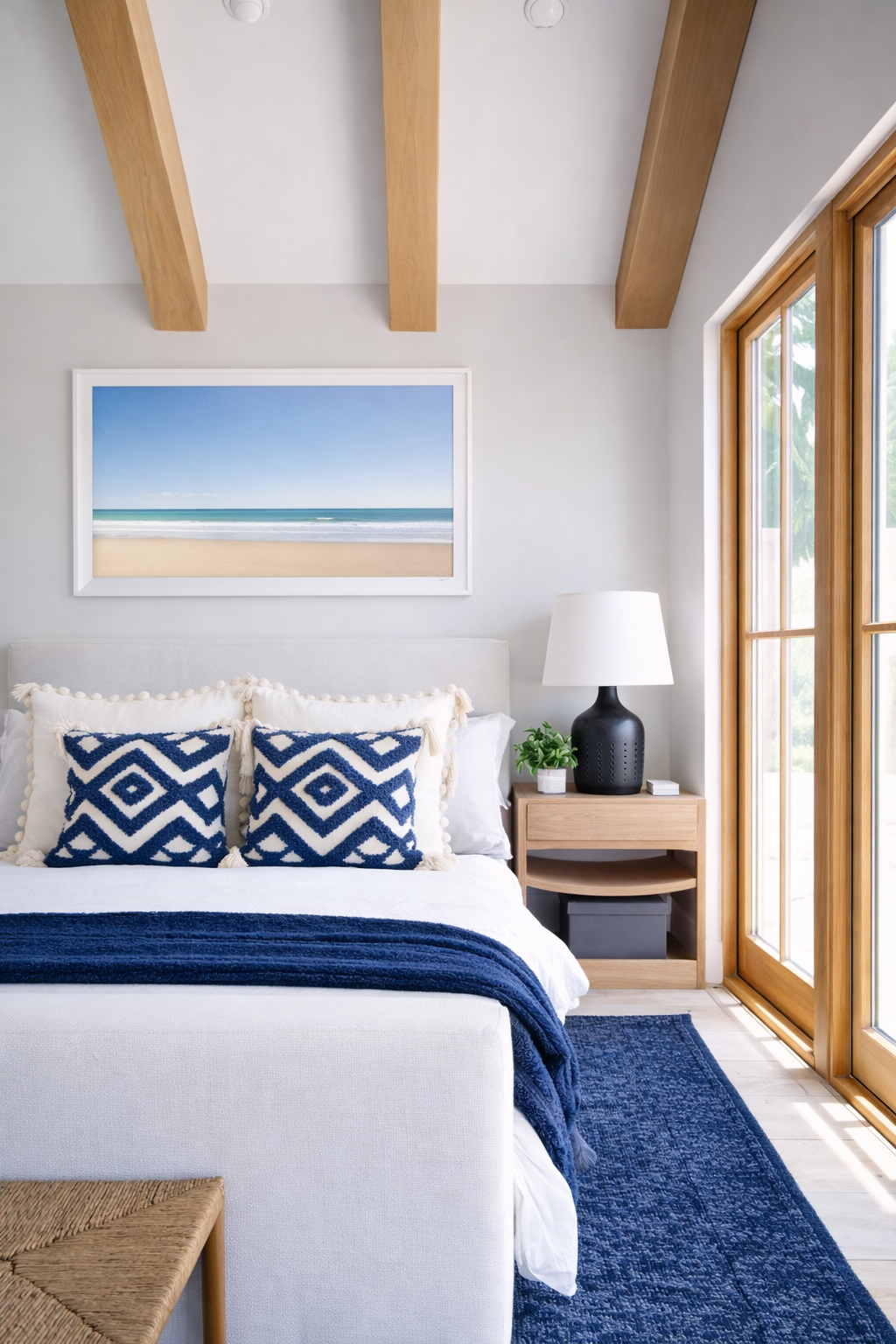 Nessa imagem também incluímos 2 Almofadas Boho Azul, em 2 medidas: